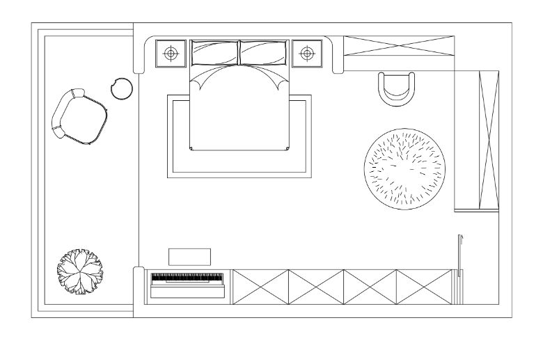臥室空間大,床頭可以不靠墻,使用一個(gè)梳妝臺(tái)隔斷,直接多出一個(gè)梳妝區(qū)域,梳妝臺(tái)靠近衣柜,日常換衣化妝都很方便,也節(jié)省了空間。