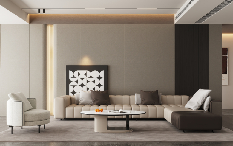撞色沙發(fā)&輕量茶幾,坐臥皆可,精致舒適,是 COCO治愈疲憊的“躺平”寶地。
