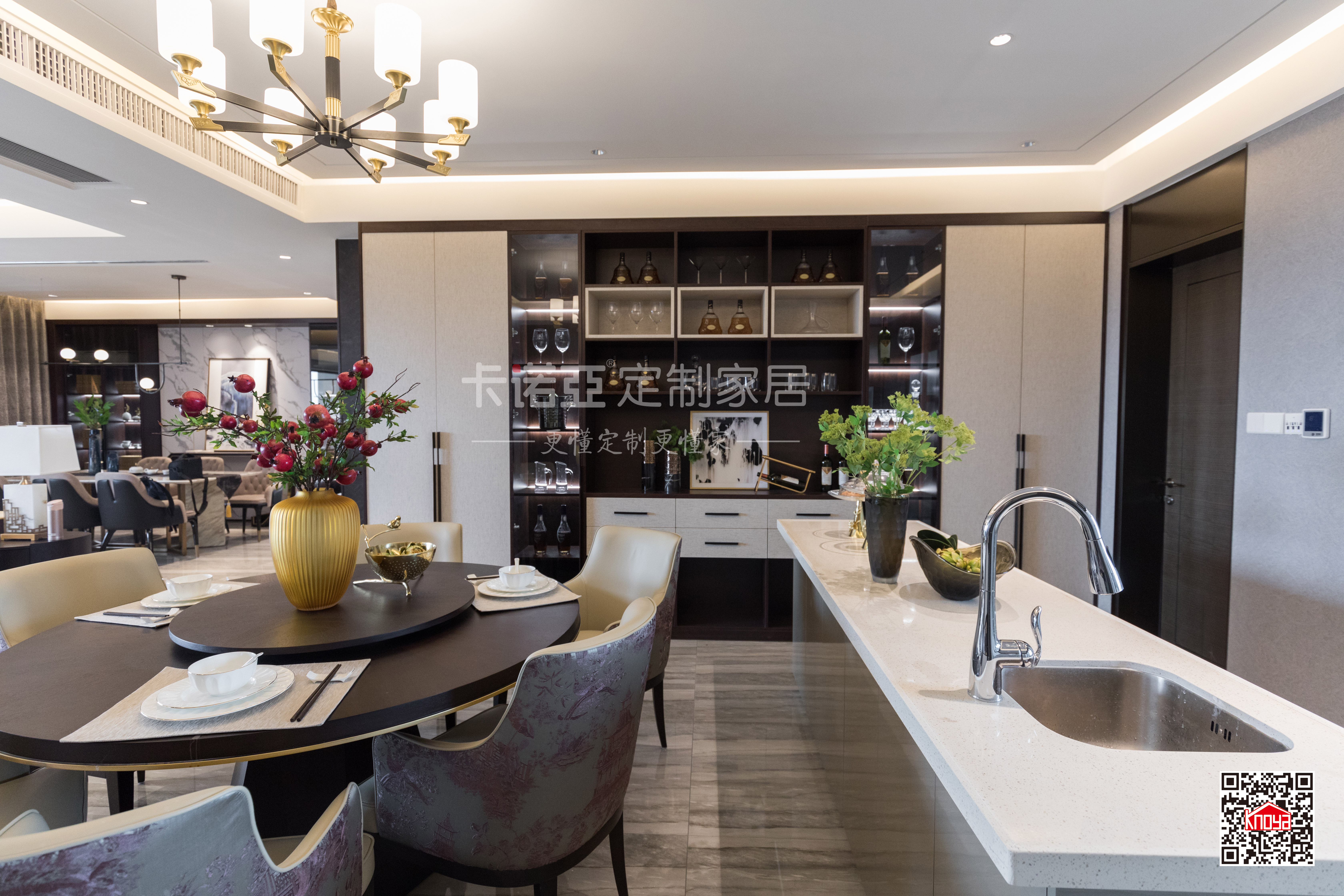 軟裝:扶手餐椅YT-1051a-2、1.5m圓餐桌YT-1050b-2、0.8m轉(zhuǎn)盤(pán)YT-1050b-8、吊燈96035-8、掛畫(huà)STS(158)、藝術(shù)畫(huà)LT-17070289、酒杯、醒酒器、酒具、酒架、仿真綠植、花藝、餐具等