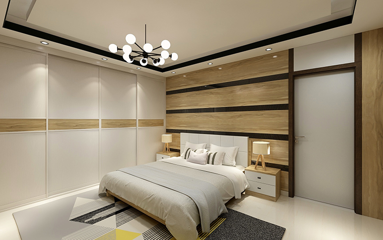 床頭護(hù)墻板清晰自然的橄欖木紋理,讓空間更具北歐風(fēng),色澤飽滿(mǎn)的黑鏡飾面點(diǎn)綴其中,散發(fā)高貴冷艷的光澤。