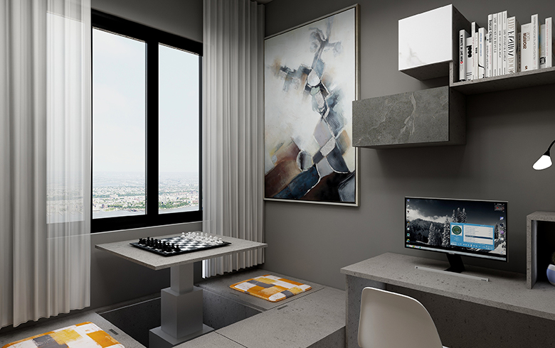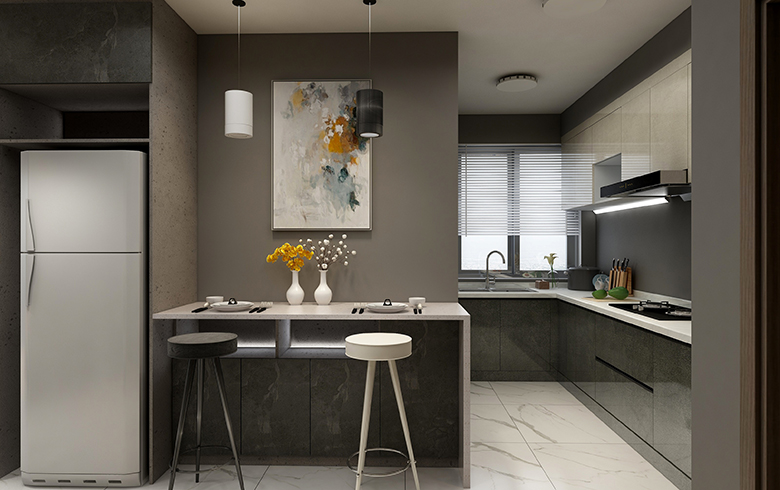 以黑白灰為主體色,的極簡風(fēng)格家居設(shè)計(jì),配上一部分深色木紋,緩和空間色調(diào)。凸顯出簡約而不簡單的現(xiàn)代簡約風(fēng)格設(shè)計(jì)。