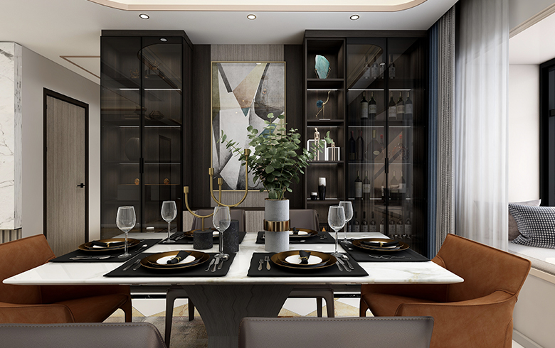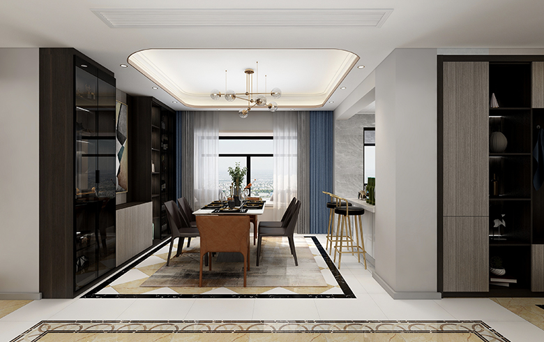 喧囂的城市,寧靜的港灣,是我們從忙綠工作中回到家的一種依托,享受舒適家的感覺。本案運用多處的銀絲木搭配黑澤明的淺深顏色做主色調(diào),搭配灰系的墻布來強烈烘托一個安靜而不浮夸的居住環(huán)境,讓整個空間不顯得壓抑。運用長城板來代替原有的護墻,顯得整個空間的不單調(diào)。背景墻的石材來襯托整案的客餐廳的亮點,奢華而不失內(nèi)涵,低調(diào)而不平淡