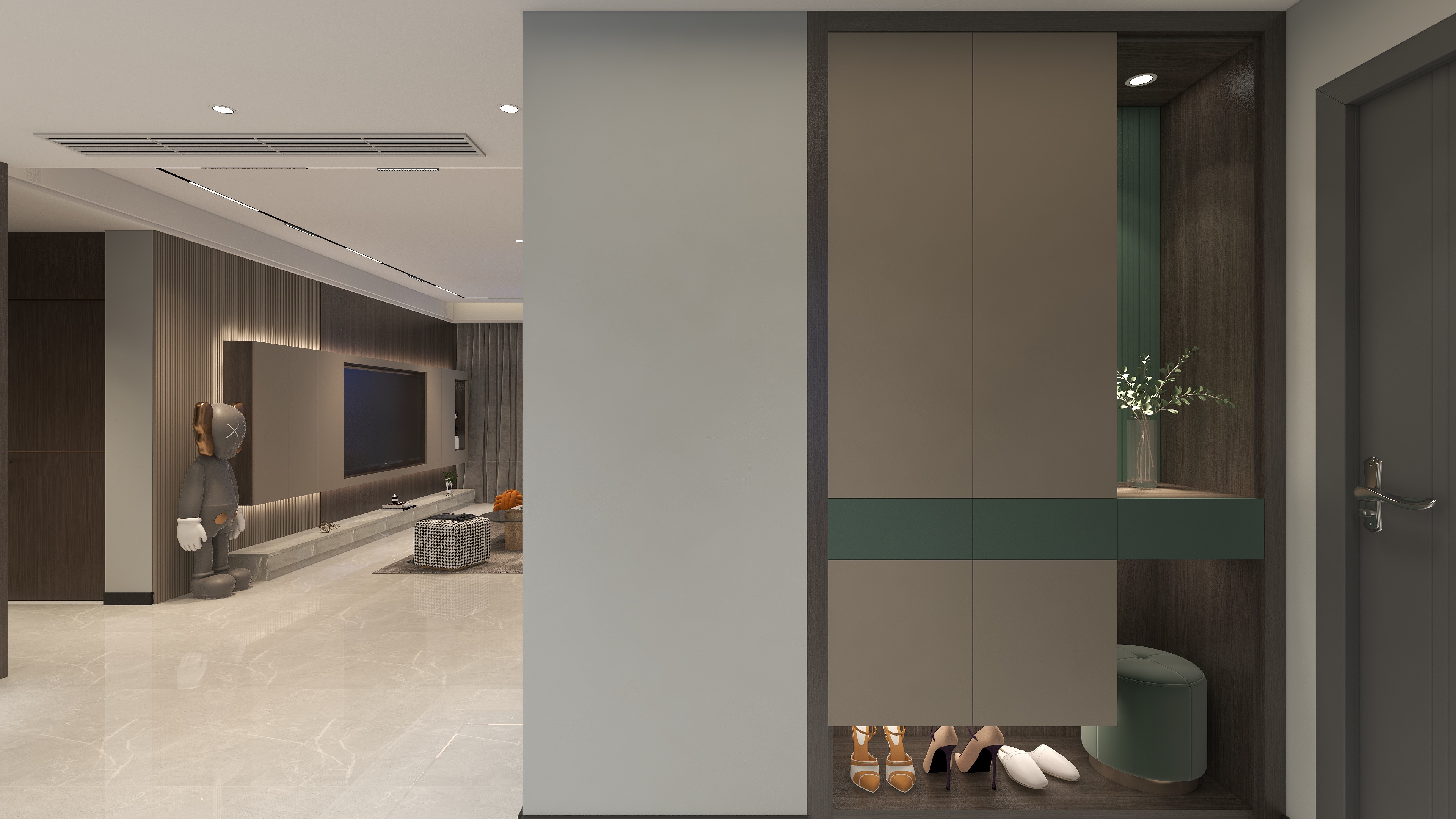 此作品以港式風(fēng)格為主風(fēng)格基調(diào),搭配少量輕奢的元素,整體以打造溫馨感為主,同時(shí)也不缺乏金屬元素和激情的色調(diào),為年輕的業(yè)主打造舒適理想的家