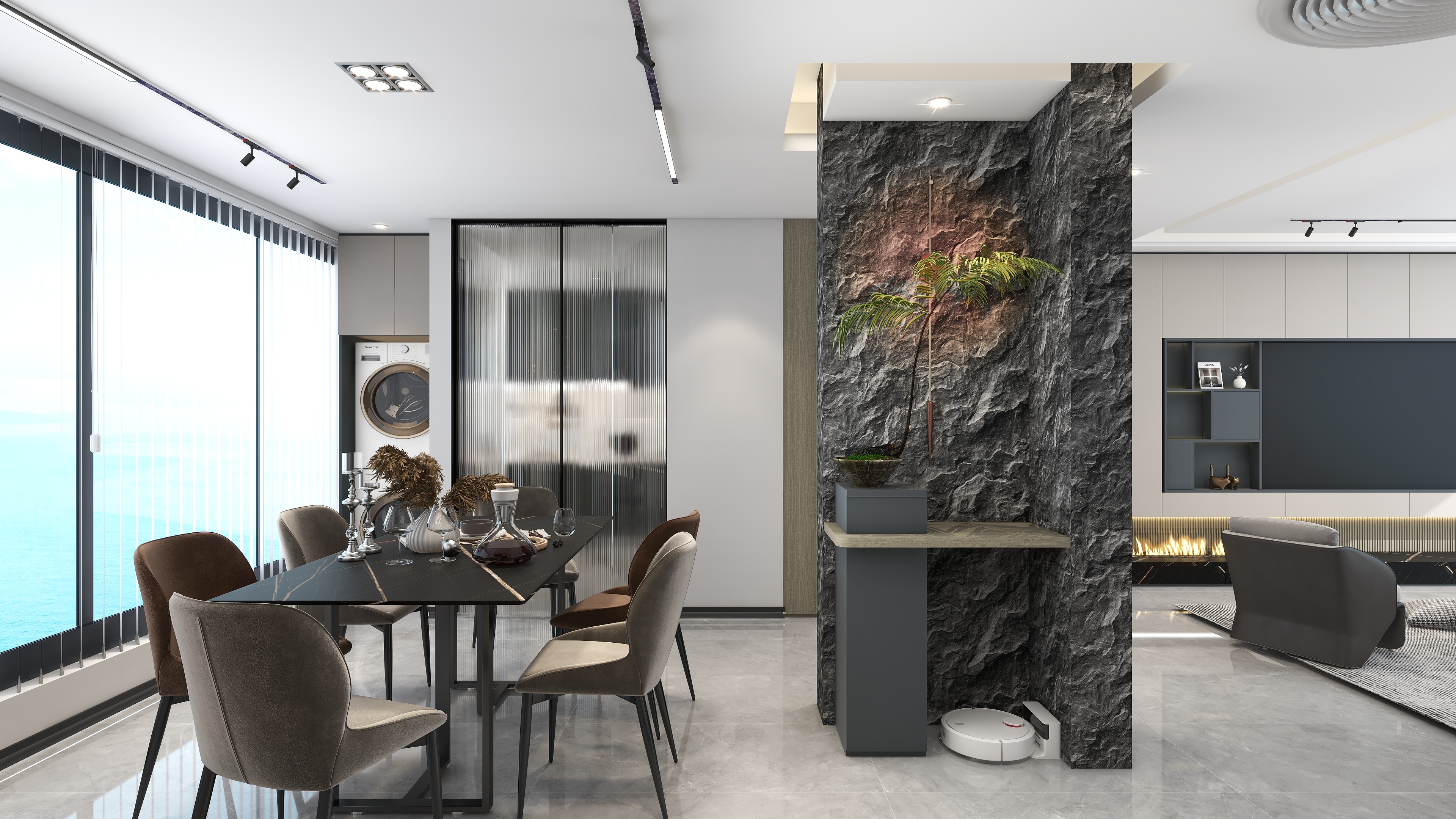 《櫟白》本案是四口之家,有三歲的孩子和老人,設(shè)計(jì)師根據(jù)每個(gè)人的需求與習(xí)慣重新規(guī)劃了空間,保留了三個(gè)房間,整體色調(diào)運(yùn)用了莫蘭迪的配色靈感,卡諾亞主要打造的是柜、墻、門(mén)一體化設(shè)計(jì),同色系的高顏值整家,整體以收納娛樂(lè)生活為一體,以靈活互動(dòng)與自由開(kāi)放為主旨,適當(dāng)?shù)牧舭?,?yōu)化細(xì)節(jié),衍生個(gè)性,締造出視野闊朗的簡(jiǎn)約格調(diào)。