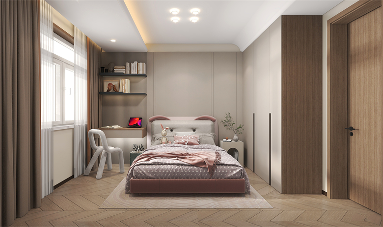 本案設(shè)計(jì),保留了原戶型的大部分結(jié)構(gòu),甄選業(yè)主鐘愛的深調(diào)木飾面表達(dá)空間敘事。整體空間穩(wěn)重大氣又不會(huì)感覺沉悶壓抑,渲染木元素的自然性,捕捉光影變幻的印記,沉淀溫馨愜意的氛圍。與業(yè)主密切的溝通中,我更加深入了解一家三口不同的喜好與需求,通過進(jìn)一步的梳理,以“家”為中心點(diǎn),構(gòu)建一個(gè)情感共存之所。