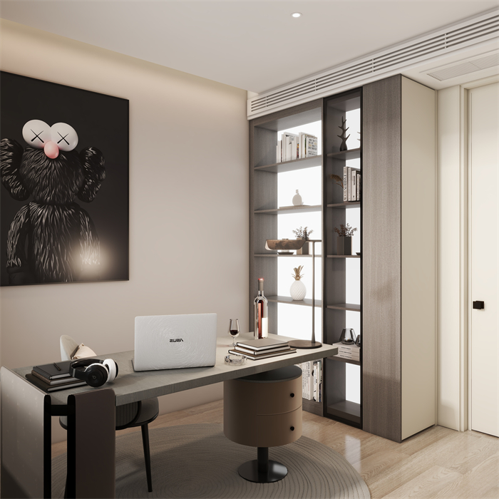 這是一個三口之家,客戶是都市精英人才,對生活充滿了熱愛,對品質有著極高的要求,所以本方案主要以高級灰木紋色為主,搭配溫柔典雅的水性漆雅杏,給客戶營造一個親近自然,同時又不失奢華的溫馨舒適的空間。廚房在原有的空間上做了一個大膽的改造,打造了一個中西結合的開放式廚房,空間更大,功能更齊全。同時一些墻角和柜體也做了圓弧設計,動線更加流暢的同時,更顯時尚和高級。