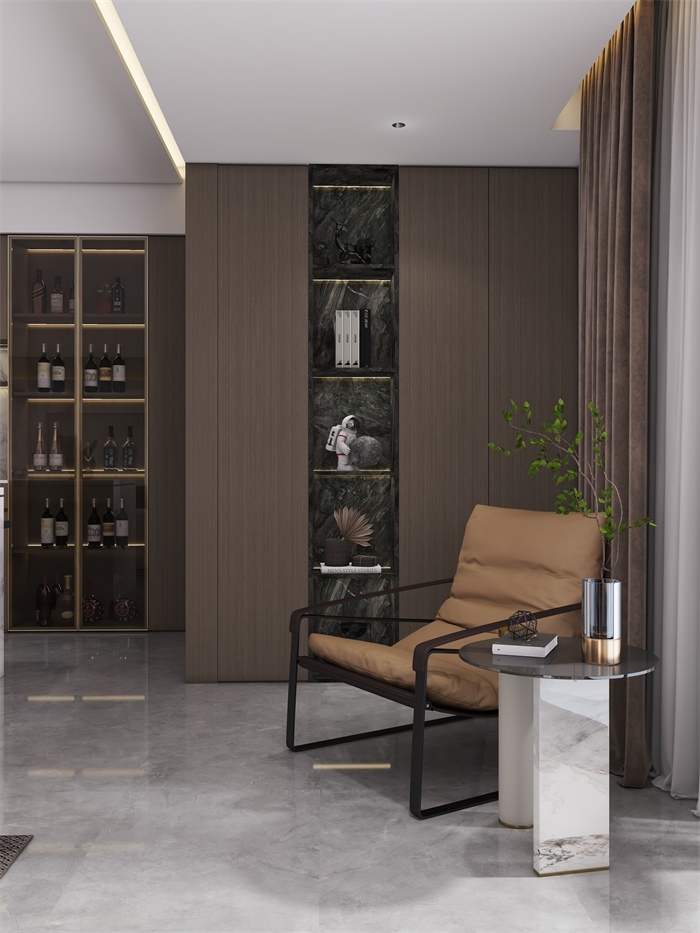 設(shè)計簡介:起居室采用大面積的落地窗,充分利用自然光線,營造明亮通風(fēng)的感覺。整體色調(diào)以中性色為主,與白色大理石結(jié)合,給人一種清爽簡潔的感覺。