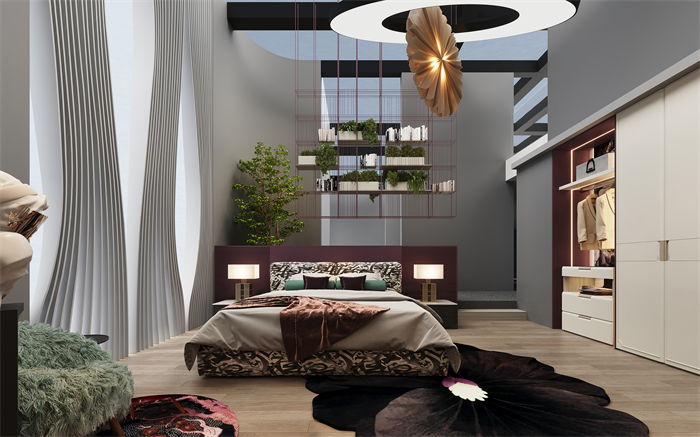 逐夢系列設(shè)計(jì)靈感上,源于當(dāng)代精英女性對(duì)精致生活的追求,代表著公司白領(lǐng)“忙在臥室”的優(yōu)雅和獨(dú)立。設(shè)計(jì)手法上,整個(gè)臥室空間按一體化多功能打造,滿足辦公、休息、放松、娛樂的需求。