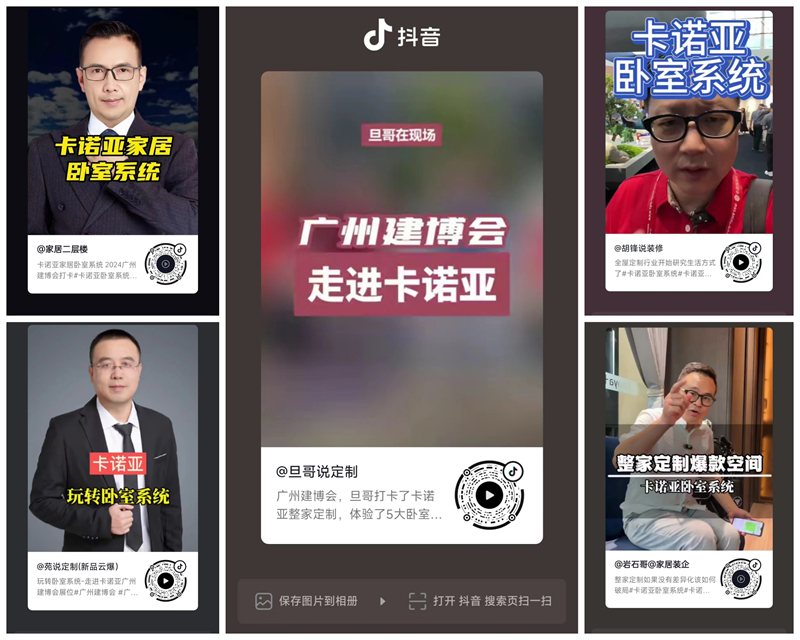 本屆建博會(huì),卡諾亞打通線上線下流量場(chǎng),橫向做輻射,縱向做滲透。以“卡諾亞臥室系統(tǒng)超級(jí)IP”為傳播主線,特邀抖音達(dá)人@旦哥說(shuō)定制、@娜仁格日勒、巖石哥@家居裝企、@家居二層樓、@苑說(shuō)定制、@胡鋒說(shuō)裝修,小紅書達(dá)人@ Snow雪芙、@愛生活的阿胖,以及權(quán)威媒體搜狐焦點(diǎn)家居、慧亞招商網(wǎng)、中華全屋定制網(wǎng)等紛紛前來(lái)卡諾亞展館,進(jìn)行專業(yè)探展與沉浸式體驗(yàn),以直播、短視頻等形式,集體為卡諾亞臥室系統(tǒng)背書。這些家居頂流KOL,展前利用短視頻打Call造勢(shì),展中第一時(shí)間多維度現(xiàn)場(chǎng)體驗(yàn)卡諾亞臥室系統(tǒng)的諸多亮點(diǎn),為卡諾亞臥室系統(tǒng)在建博會(huì)上強(qiáng)勢(shì)吸睛助力,展后則深度解析卡諾亞臥室系統(tǒng)作為切入點(diǎn),帶動(dòng)整家定制的全案服務(wù)與成交推廣的財(cái)富密碼。