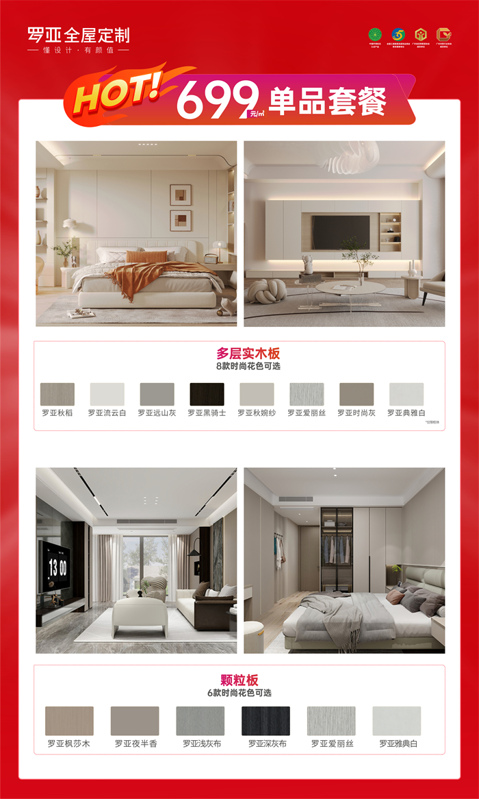 隨著中秋、國慶雙節(jié)的到來,家裝市場熱度飆升,卡諾亞家居旗下年輕時尚品牌羅亞全屋定制,于9月12日-10月7日盛大推出“雙節(jié)同慶,全民鉅惠”提前放“價”活動,5重好禮送到家,699元/㎡單品套餐空前鉅惠,29800元整家全屋套餐,一口價承包柜墻門+配套家品,今年超強特惠風暴來襲,讓更多的年輕消費者輕松實現(xiàn)一站式配齊、一體化設計的高顏質(zhì)家裝需求。