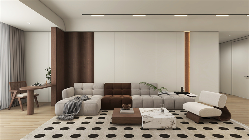 韶光系列汲取金秋的詩(shī)意靈感,煦色韶光,鎏金年華,于都市喧器中,借自然手法,將復(fù)古細(xì)膩的“清秋胡桃”棕色木皮紋理融于空間,營(yíng)造高雅格調(diào)的詩(shī)意棲居空間。溫暖而深沉的棕色,細(xì)膩的紋理,自然的質(zhì)感,不禁讓人聯(lián)想到秋天的寧?kù)o,打造溫暖懷舊且質(zhì)樸高雅的氛圍。