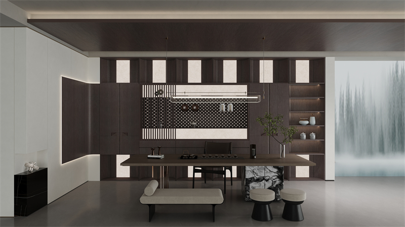 設(shè)計(jì)靈感:藏玉系列以在中國(guó)文化中象征“仁、義、禮、智、信”五德的玉石為靈感源泉,結(jié)合藏物之雅與玉之恒久的特質(zhì),延伸出“形、質(zhì)、氣、韻、神”的五重設(shè)計(jì)理念。旨在以小見(jiàn)大、步移景異,將古樸東方的風(fēng)雅格調(diào)與現(xiàn)代生活的隱奢雅境完美融合,營(yíng)造層次遞進(jìn)的空間情緒。