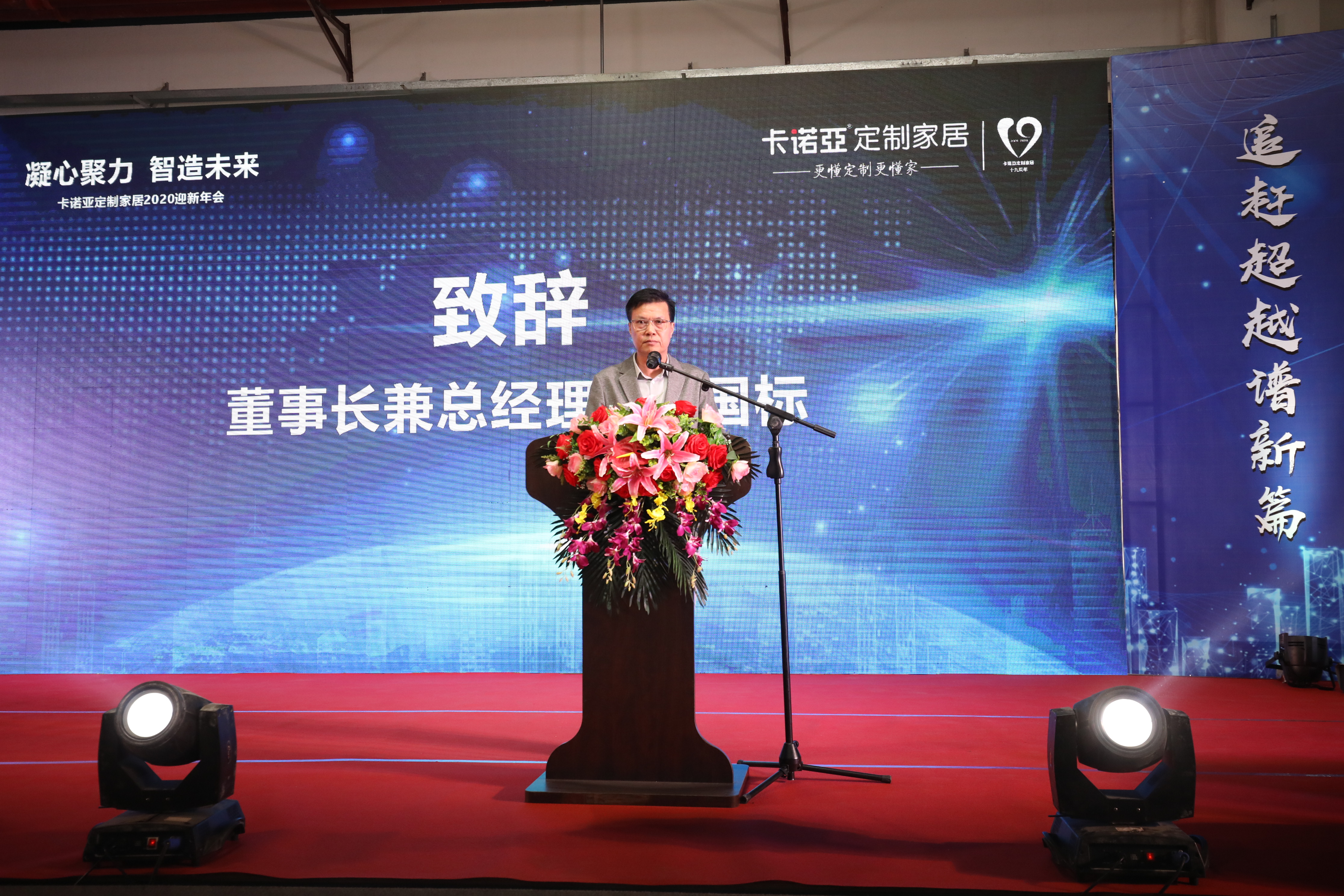 2020年1月10日,“凝心聚力,智造未來”卡諾亞定制家居2020迎新年會,在卡諾亞清遠工業(yè)4.0智造基地隆重舉行,共有1500余人參加了此次活動??ㄖZ亞董事長兼總經(jīng)理程國標(biāo)先生應(yīng)邀作為領(lǐng)導(dǎo)嘉賓出席會議并作重要致辭,出席會議的還有執(zhí)行董事吳紹華女士、副總經(jīng)理兼生產(chǎn)中心總經(jīng)理葉喜都先生、副總經(jīng)理兼營銷中心總經(jīng)理賴永精先生、營銷中心副總經(jīng)理李偉明先生等高層,以及其他董監(jiān)高。