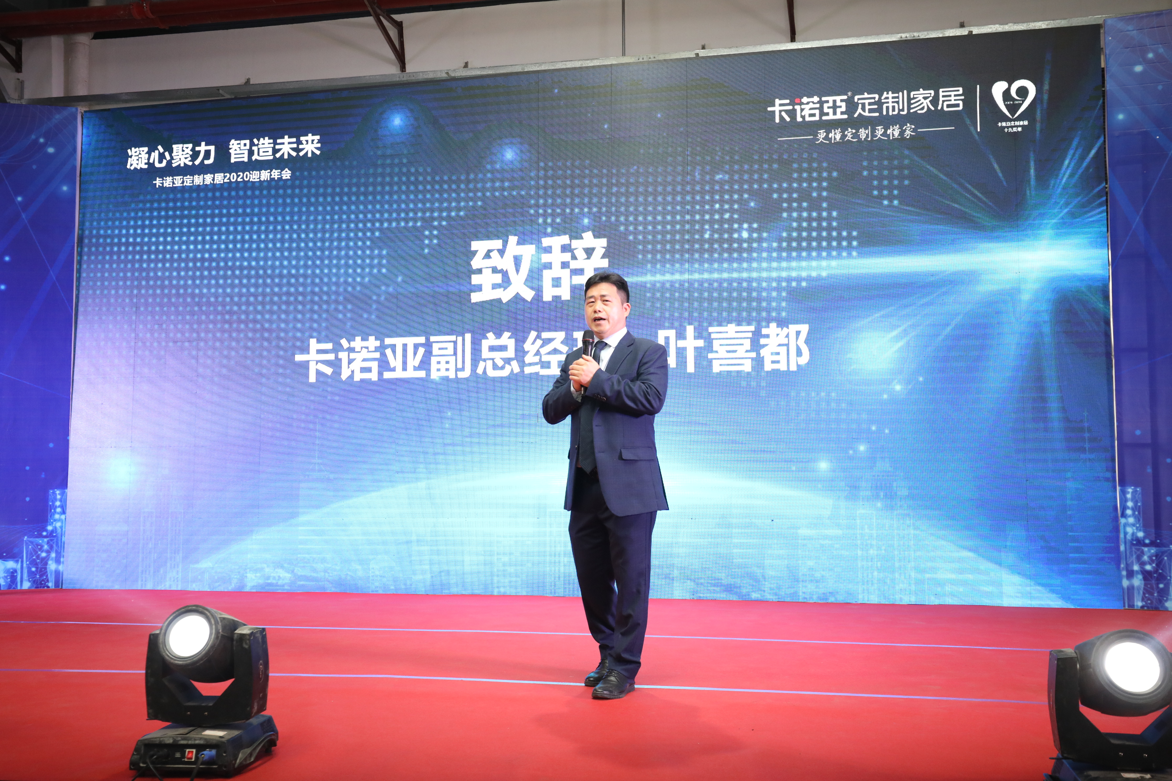 2020年1月10日,“凝心聚力,智造未來”卡諾亞定制家居2020迎新年會,在卡諾亞清遠工業(yè)4.0智造基地隆重舉行,共有1500余人參加了此次活動。卡諾亞董事長兼總經(jīng)理程國標(biāo)先生應(yīng)邀作為領(lǐng)導(dǎo)嘉賓出席會議并作重要致辭,出席會議的還有執(zhí)行董事吳紹華女士、副總經(jīng)理兼生產(chǎn)中心總經(jīng)理葉喜都先生、副總經(jīng)理兼營銷中心總經(jīng)理賴永精先生、營銷中心副總經(jīng)理李偉明先生等高層,以及其他董監(jiān)高。