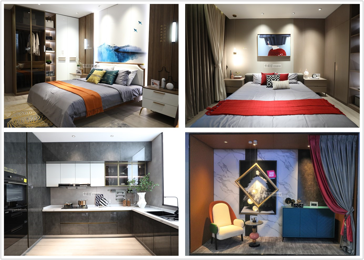 在產(chǎn)品展示方面,卡諾亞再次令人耳目一新,為客商帶來了卡諾亞行業(yè)首創(chuàng)的“空間定制”新品“輕奢格調(diào)”和“極簡生活”系列。每個(gè)空間均從卡諾亞行業(yè)獨(dú)創(chuàng)的“空間定制”高度進(jìn)行設(shè)計(jì),讓家裝、家具、家飾及家電統(tǒng)一風(fēng)格,“天、地、墻”完美搭配,一站式配齊,體現(xiàn)整體和諧之美。其次,采用同步國際潮流家居、卡諾亞自主研發(fā)的輕奢極簡花色墨趣、銀絲木、染影銀、LCT珍珠白、黑澤明、御品木、黑鉆灰、雅皮士、太空石等,通過設(shè)計(jì)師的巧妙搭配和撞色設(shè)計(jì),營造了充滿色彩立體層次質(zhì)感的高端空間。