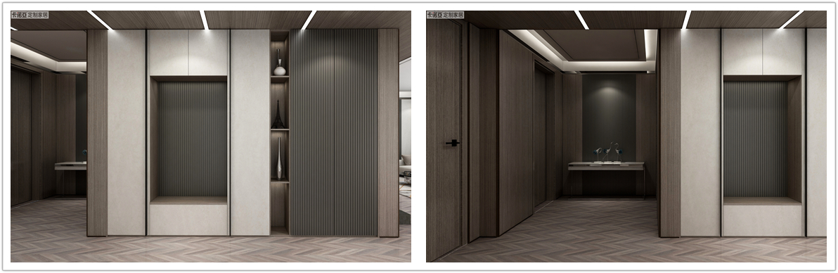 流金溢彩系列,整體設(shè)計(jì)不繁瑣,不重色彩的濃烈而重線條的表達(dá),以局部的細(xì)節(jié)彰顯空間獨(dú)特的韻味和文化厚度,形成傳統(tǒng)與現(xiàn)代元素和諧共生的新中式空間。流金溢彩系列點(diǎn)睛之筆在于門板、護(hù)墻板、抽面采用內(nèi)嵌式回紋型金屬條,一改門板平面單一的刻板印象,滿滿的輕奢高級(jí)感撲面而來。