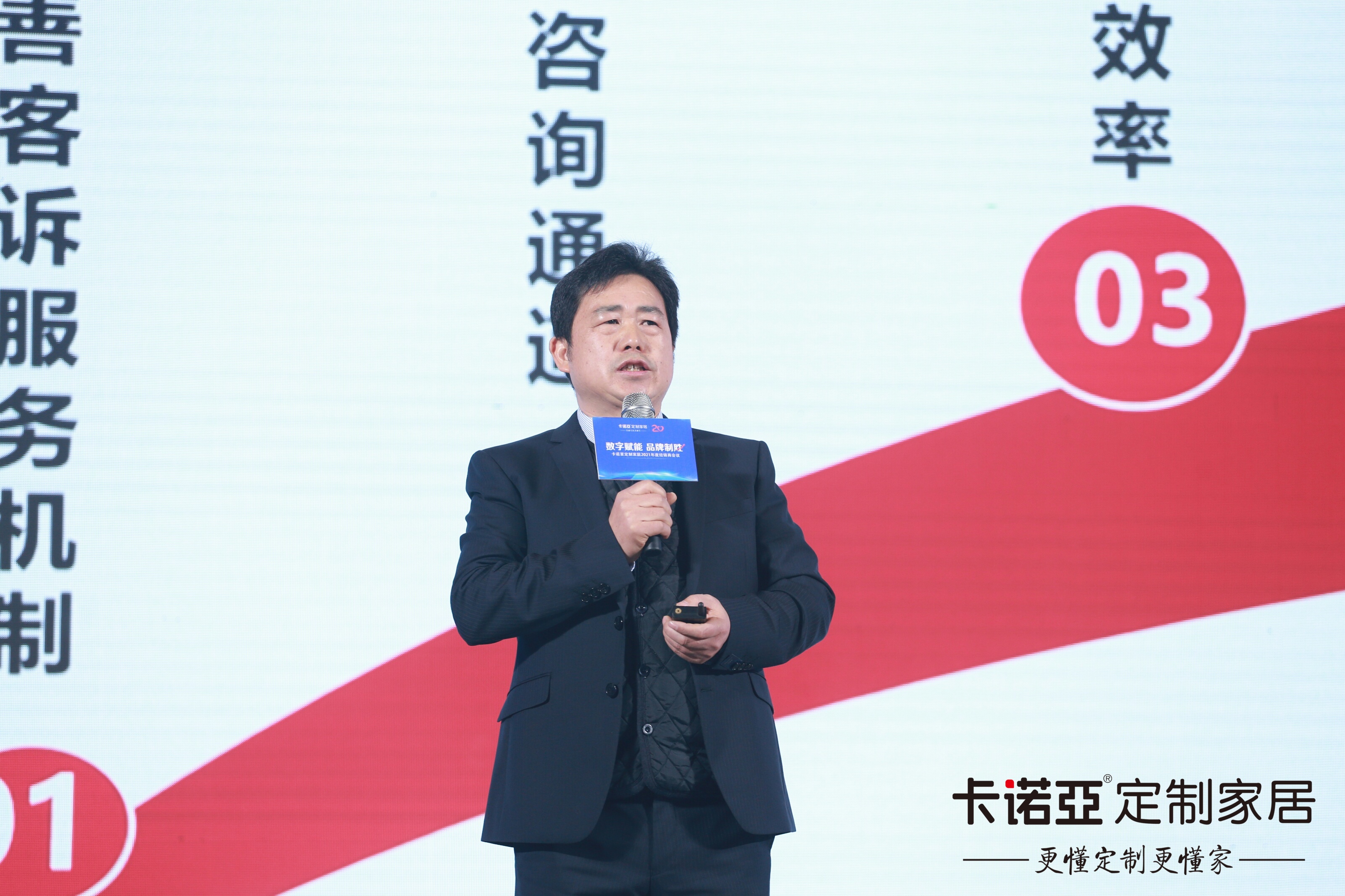 圖:卡諾亞定制家居渠道總監(jiān)曹崇慧先生做“2021年渠道執(zhí)行”演講