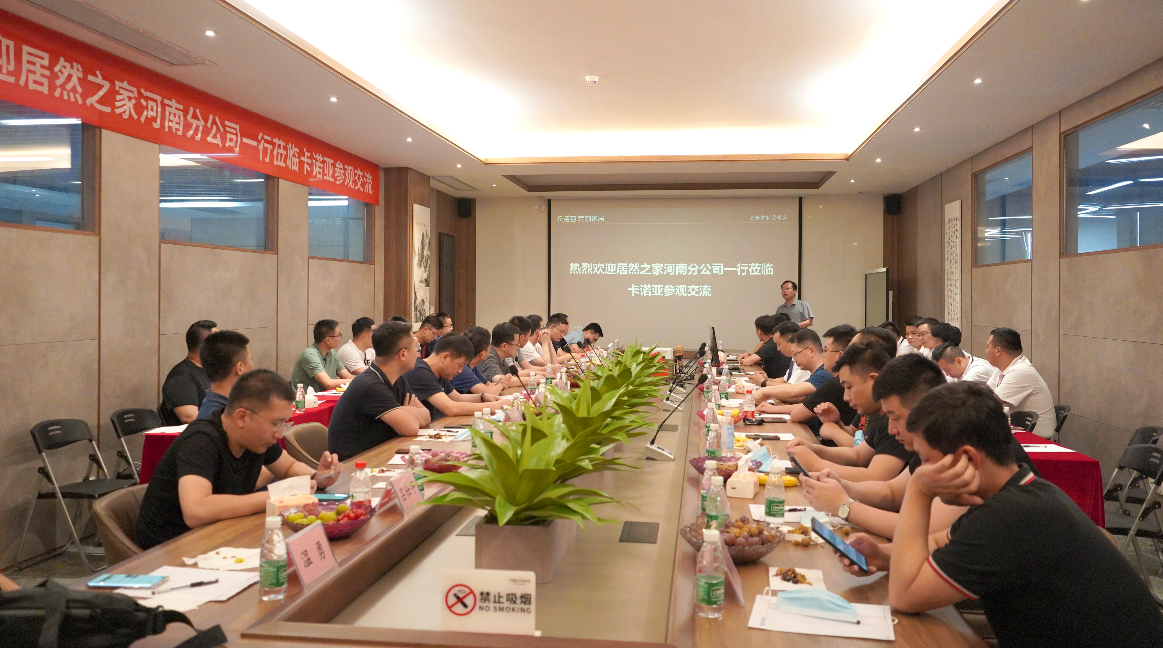 7月21日,居然之家河南分公司總經(jīng)理張健先生攜同河南各分店總經(jīng)理一行30多人,蒞臨卡諾亞定制家居清遠工業(yè)4.0制造基地參觀考察交流。卡諾亞定制家居營銷副總經(jīng)理李偉明等公司高層全程陪同,雙方就布局河南市場的合作事宜進行深入的探討。