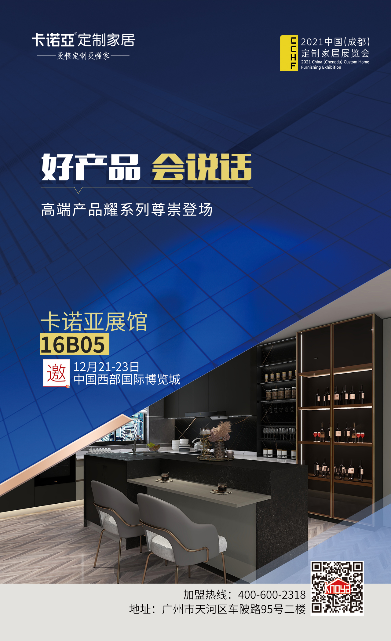 12月21-23日,2021中國(成都)定制家居展覽會舉行,位于中國西部國際博覽城16B05展位的卡諾亞定制家居,將攜年度新品現(xiàn)代簡約風(fēng)格高端產(chǎn)品耀系列首度亮相展會。新品以行業(yè)獨(dú)創(chuàng)“空間定制”模式進(jìn)行展示,并使用環(huán)保水性漆、時尚LCT亮光板等新材料以及新花色,加上重磅招商政策,將為加盟商帶來一場定制財(cái)富盛宴。