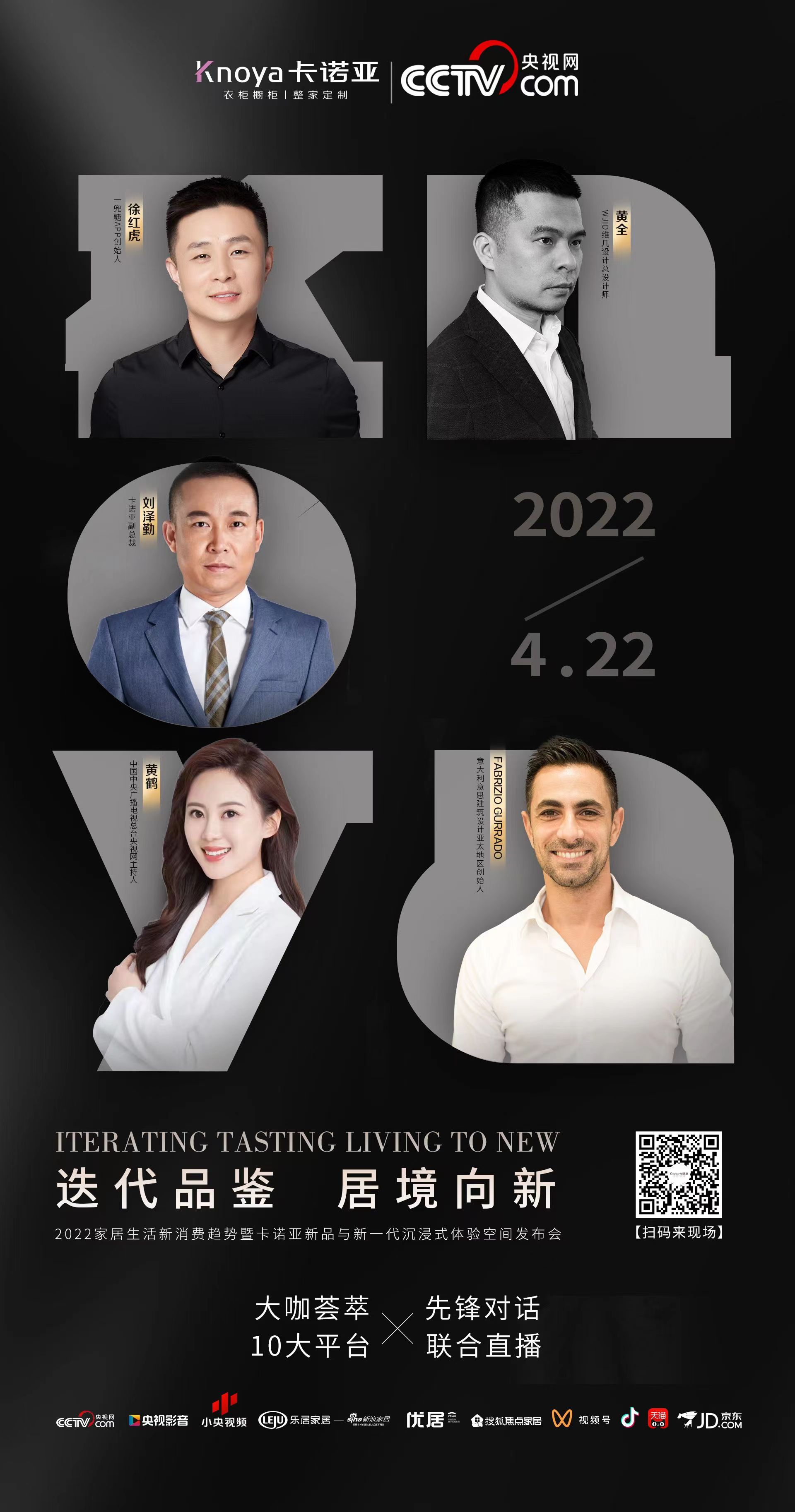 4月22日,“迭代品鑒,居境向新“2022家居生活新消費(fèi)趨勢(shì)暨卡諾亞新品與新一代沉浸式體驗(yàn)空間發(fā)布會(huì),在北京CCTV央視網(wǎng)演播廳圓滿舉行。卡諾亞副總裁劉澤勤,央視網(wǎng)產(chǎn)業(yè)發(fā)展事業(yè)群總經(jīng)理宋維君,央視網(wǎng)主持人黃鶴,一兜糖APP創(chuàng)始人徐紅虎,意?利意思建筑設(shè)計(jì)亞太地區(qū)創(chuàng)始人Fabrizio Gurrado、WJID維幾設(shè)計(jì)總設(shè)計(jì)師黃全,通過(guò)MR云直播方式相聚北京,共同見(jiàn)證盛會(huì)。此次發(fā)布會(huì),卡諾亞攜手國(guó)家級(jí)CCTV央視網(wǎng),首開(kāi)定制行業(yè)先河,借助權(quán)威官媒優(yōu)勢(shì),賦能卡諾亞品牌價(jià)值,極大提升其品牌形象。