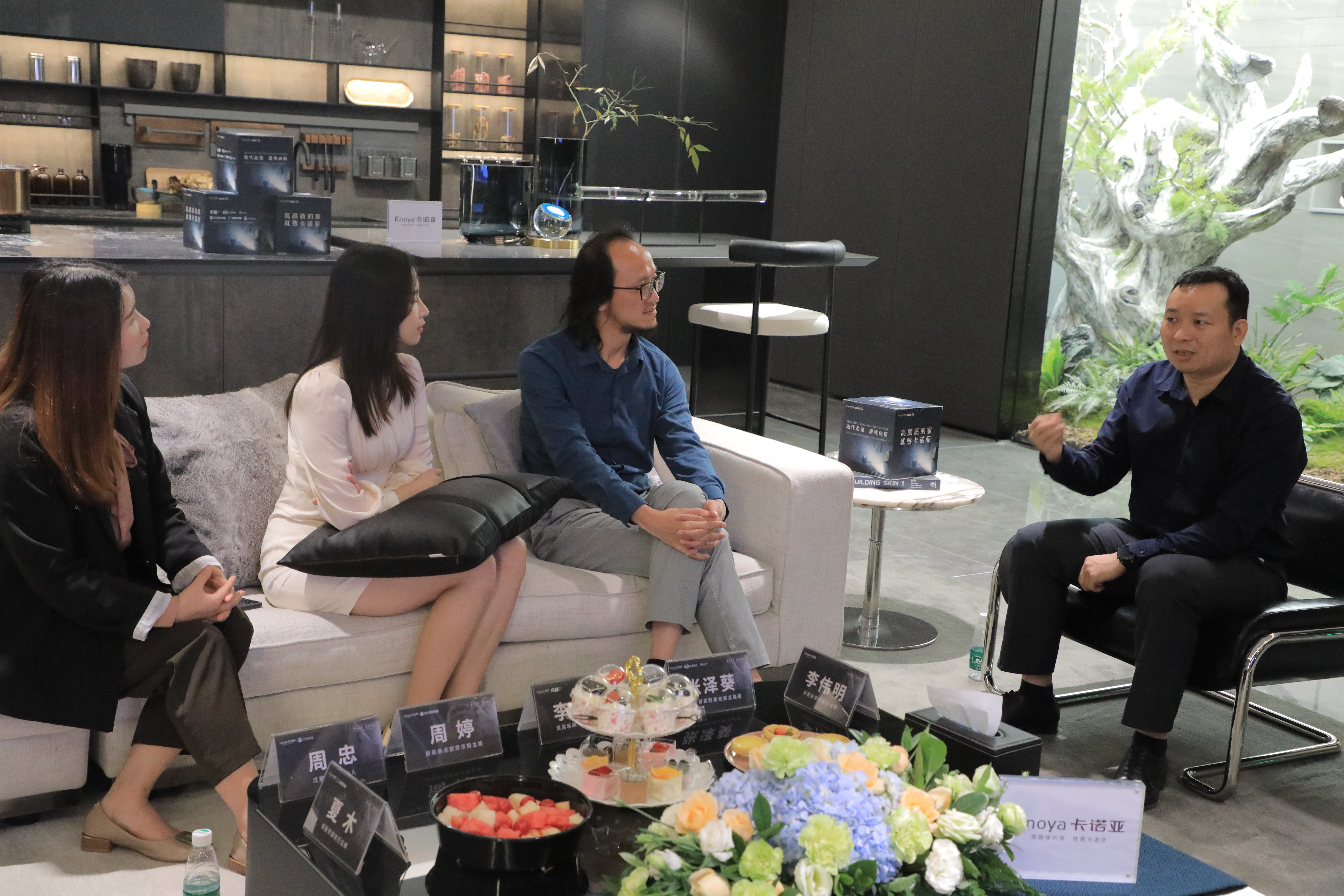 觀摩展廳結(jié)束后,5位媒體大咖與卡諾亞進行了一場深度對話。在對話環(huán)節(jié)中,卡諾亞營銷副總經(jīng)理李偉明詳細闡述了卡諾亞新LOGO誕生背后的故事,以及卡諾亞鎖定“衣柜櫥柜|整家定制”品牌戰(zhàn)略新定位的初衷和遠見。